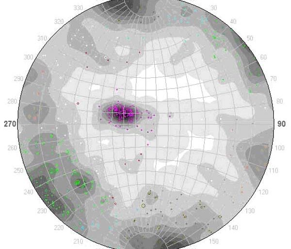 Once fracture traces and planes have been digitized, they are separated in fracture sets on the stereonet and they are assigned different colours to refer to different fracture sets.
